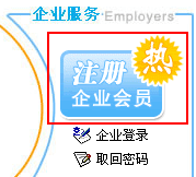 打開網(wǎng)站首頁,點擊《注冊企業(yè)會員》按鈕。如下圖所示: